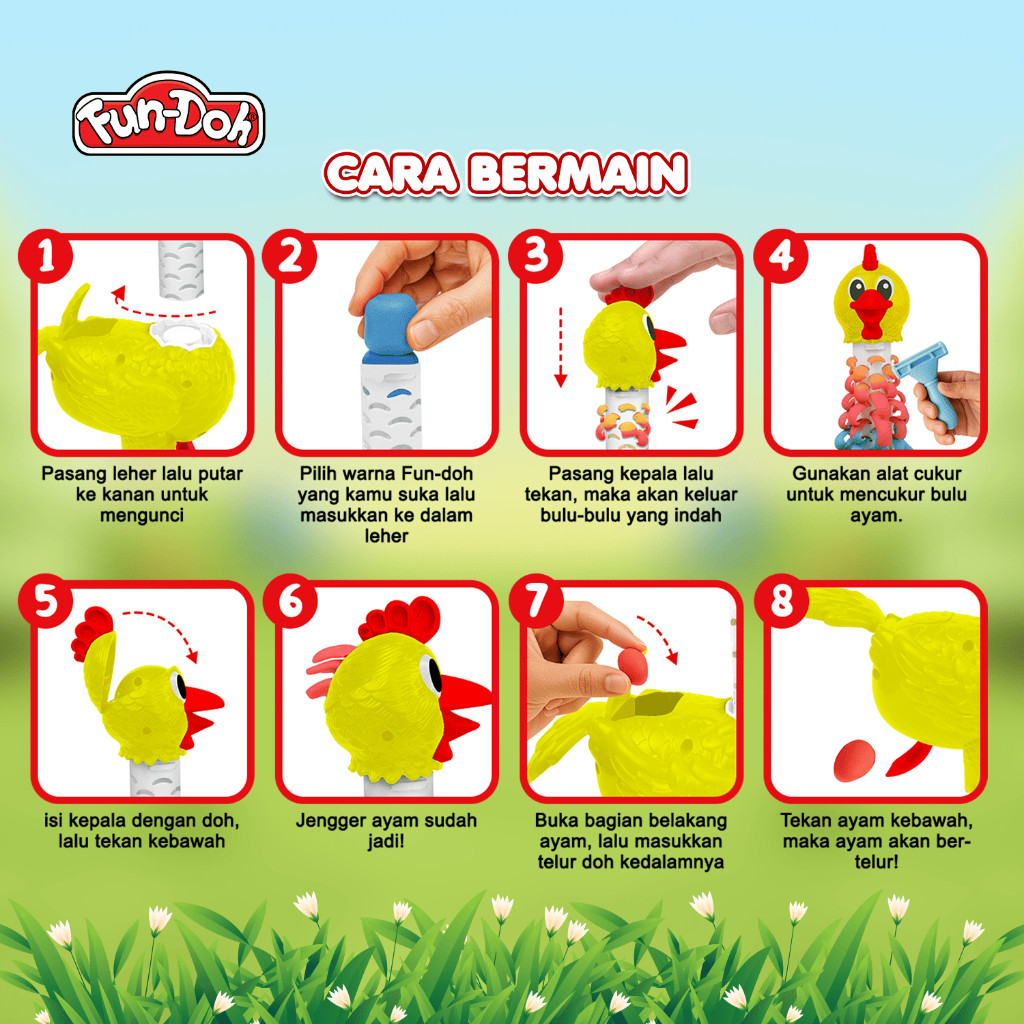 Ayo kenalan dengan Si Ayam Fundoh, mainan ayam yang bisa bertelur! Mainan edukasi bertema peternakan ini punya banyak aktivitas seru untuk anak, seperti menumbuhkan bulu, mencukur bulu dan bertelur dengan lucu.