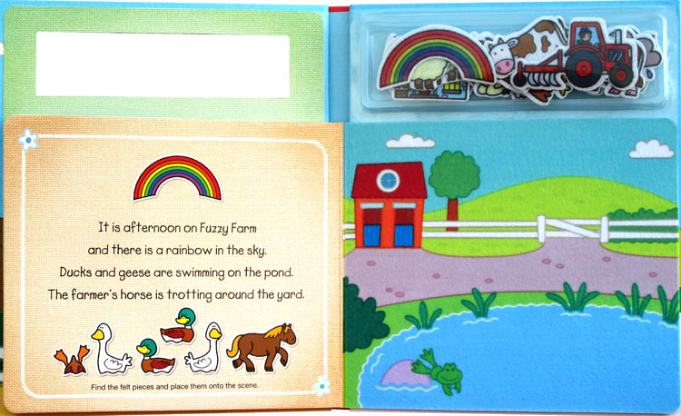 | Book Title | : | Fuzzy Farm with 28 felt play pieces and 5 playscenes |
