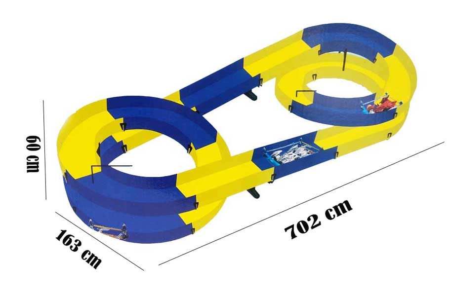 Lintasan/ jalur Tamiya model 1 lintasan siap rakit yang didesign simple, keren & unik dengan 2 lintasan yang memutar, ukuran setelah rakit 702x163x60cm dan ukuran lebar jalur adalah 11,5cm. Selain untuk mobil Tamiya track ini juga dapat digunakan sebagai lintasan mobil RC lainnya. Bahan material plastik berkualitas yang halus, kokoh dan aman. 1set lintasan terdiri dari: 36 pcs key, 4 pcs pole lap, 2 pcs pol line, 6 pcs straight track, 12 round track & sticker tempel (TIDAK TERMASUK MOBIL TAMIYA). Ukuran Dus 55x18x38cm, Volume 8kg.